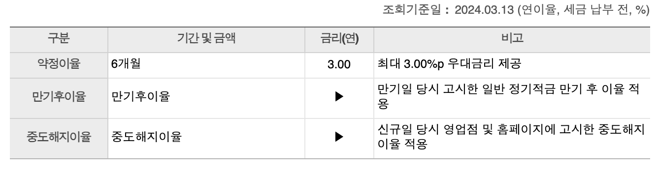 - 기본금리 3% + 추가 우대금리 최대 3% 제공